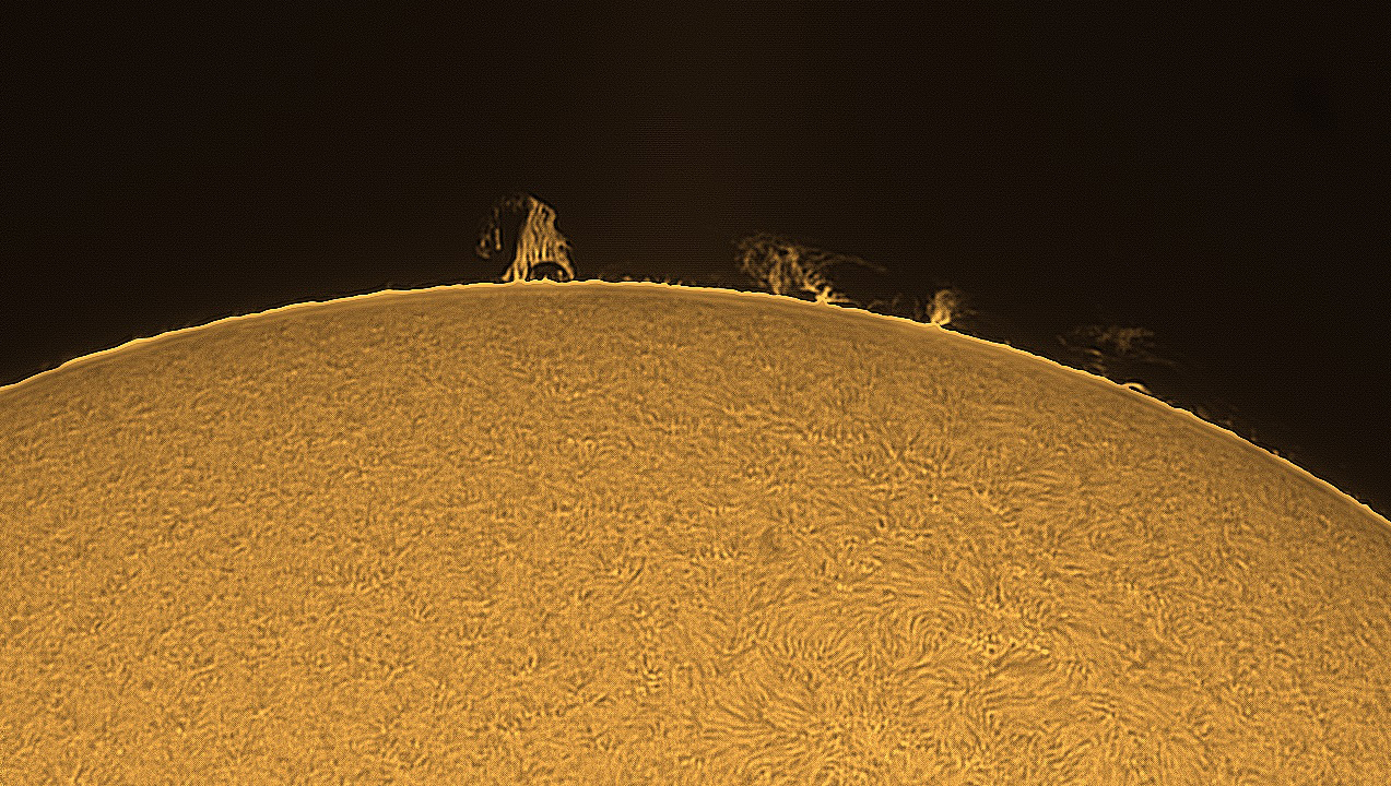 Fraaie protuberansen (grillig gevormde materiebrug in de atmosfeer van