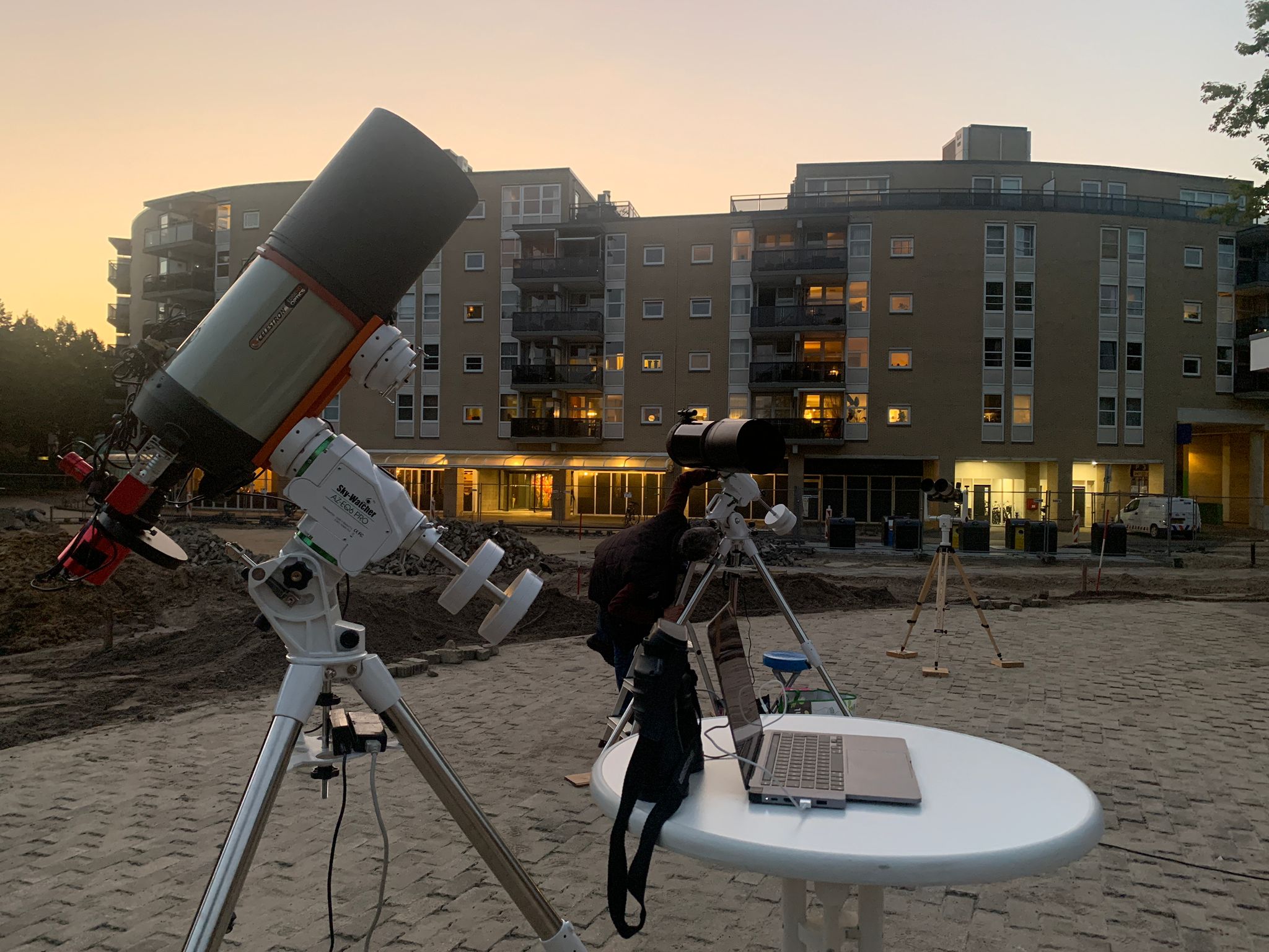 De eerste sterrenkijkavond in het Doepark was zeer geslaagd! Er stonden 3 telescopen opgesteld. Ondanks de lichtvervuiling in de stad kun je dus toch genieten van de sterrenhemel in het Doepark. Vooral wanneer je de lage lampjes bij het fietspad verduisterd. Kortom een zeer geslaagde eerste sterrenkijkavond in het Doepark!