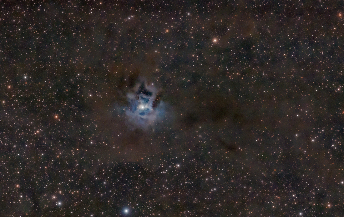 Het helder blauwe deel van de Irisnevel meet ongeveer 6 lichtjaar in doorsnede.